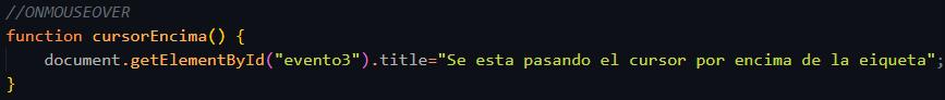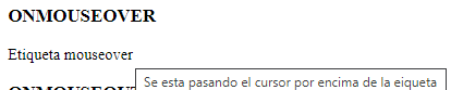 Se ejecuta cuando se pasa el cursor del mouse por la etiqueta HTML seleccionada.