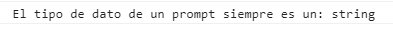 Esta funcionalidad permite capturar texto desde una ventana similar a la del alert y confirm. Siempre devuelve valores tipo string a menos que se cancele la opción solo ahí será tipo object.