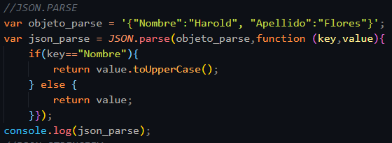 Transforma un string en un objeto javascript. Esta función recibe dos parámetros: el string y una función. La función es opcional y sirve para realizar cálculos u otras operaciones entre los datos del nuevo objeto por ejemplo: