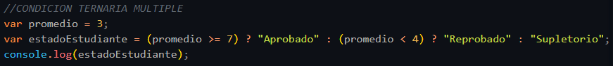 - Condición ternaria múltiple: Contiene dos o más condiciones.