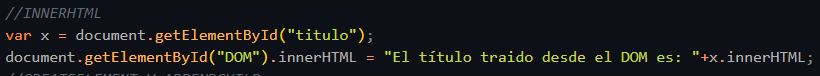 Elemento.innerHTML: Cambia el contenido del elemento HTML buscado.